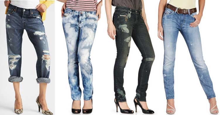 Modelos com cara de “detonado” também entram nessa tendência. O jeans super claro, com uma lavagem quase branca com manchas, que é chamada de acid washed, justamente por dar um jeito de desbotado, é um dos preferidos entre as fashionistas. Rasgados e puídos propositais aqui e ali também são interessantes para quem quer um look inspirado no estilo rocker.Desde o seu surgimento, meio sem querer, muita coisa mudou, até mesmo o próprio jeans, ficou mais flexivel e gostoso de ser utilizar, sem contar com as diversas e infintas criatividades dos modernos estilistas que fazem, dele, uma obra prima.